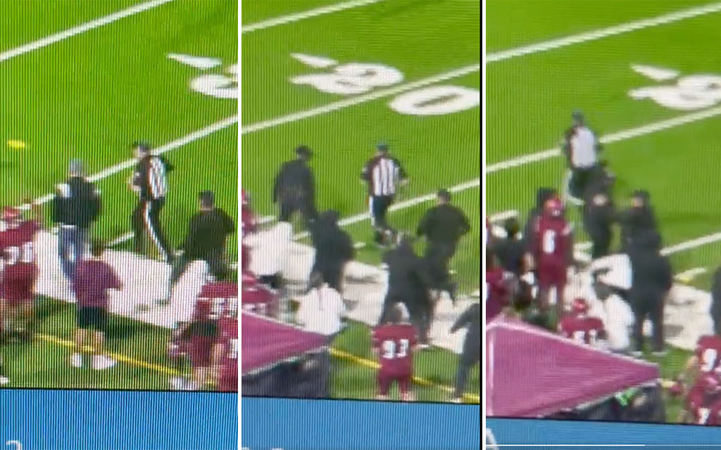 Video shows a Dothan High School coach slamming an assistant to the ground after a sideline interference penalty. (@hekkubus)
