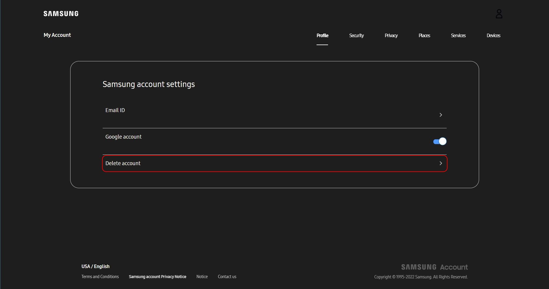 - Click the Delete account button to initiate the deletion process.