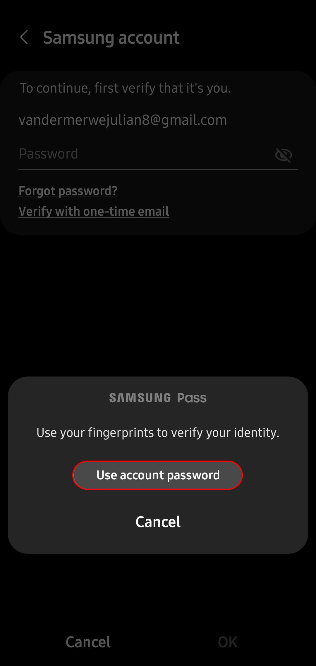 - You’ll be prompted to verify your identity using your fingerprint. Alternatively, if you don’t have biometrics enabled, you can use your account password.
