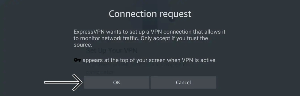 - Firestick will request you to authorize your VPN. Select “OK.”