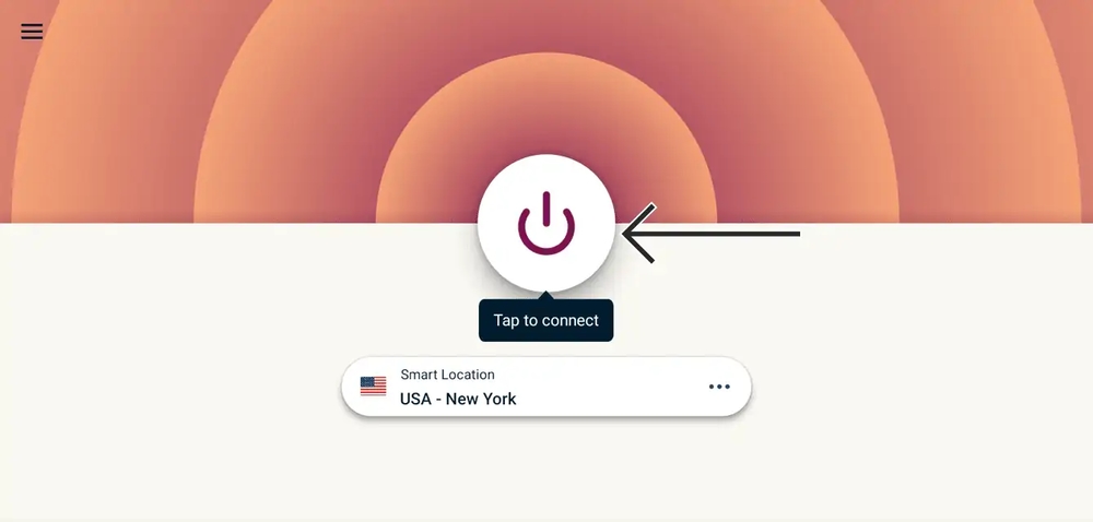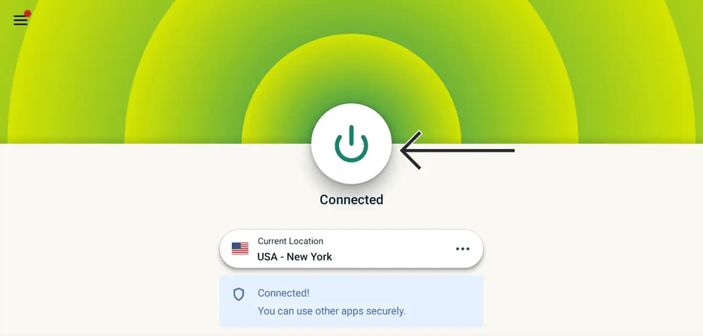 Select the ON/OFF switch to allow ExpressVPN to find a suitable VPN server.