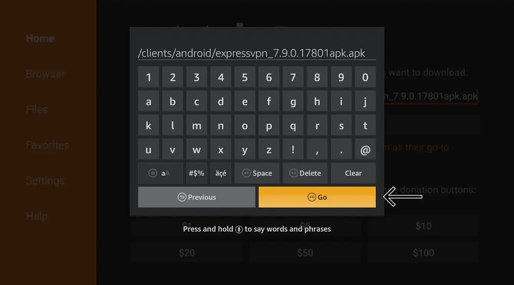 You now need to enter a URL pointing to ExpressVPN’s latest app for Fire OS.