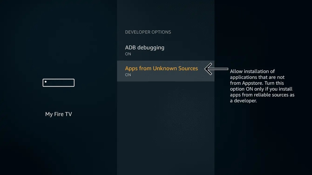 - Navigate to Settings > My Fire TV > Developer Options.