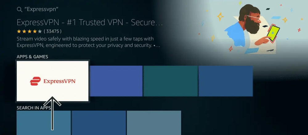 - Select ExpressVPN’s thumbnail among the search results visible on your TV screen.